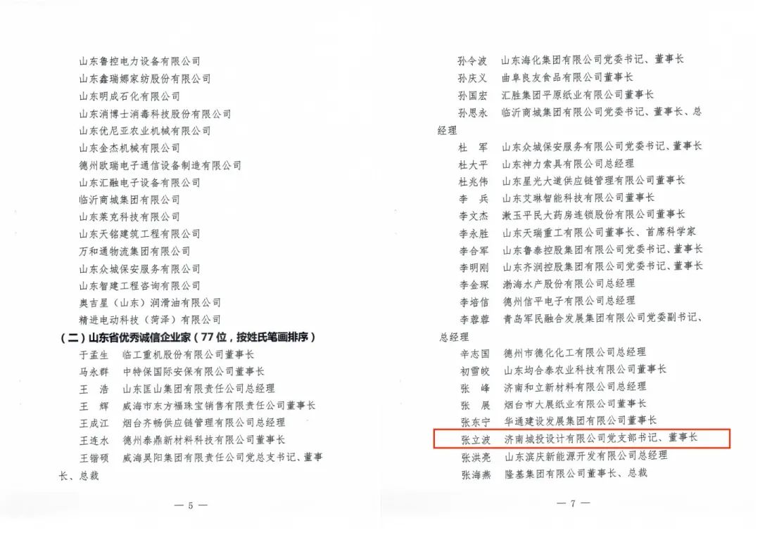 會議表彰了全省87家誠信企業(yè)、77名優(yōu)秀誠信企業(yè)家、25家誠信建設(shè)示范企業(yè)和15名誠信建設(shè)示范企業(yè)領(lǐng)軍人物。其中,濟(jì)南城投設(shè)計(jì)有限公司被授予“山東省誠信企業(yè)”榮譽(yù)稱號,公司黨支部書記、董事長張立波被授予“山東省優(yōu)秀誠信企業(yè)家”榮譽(yù)稱號。